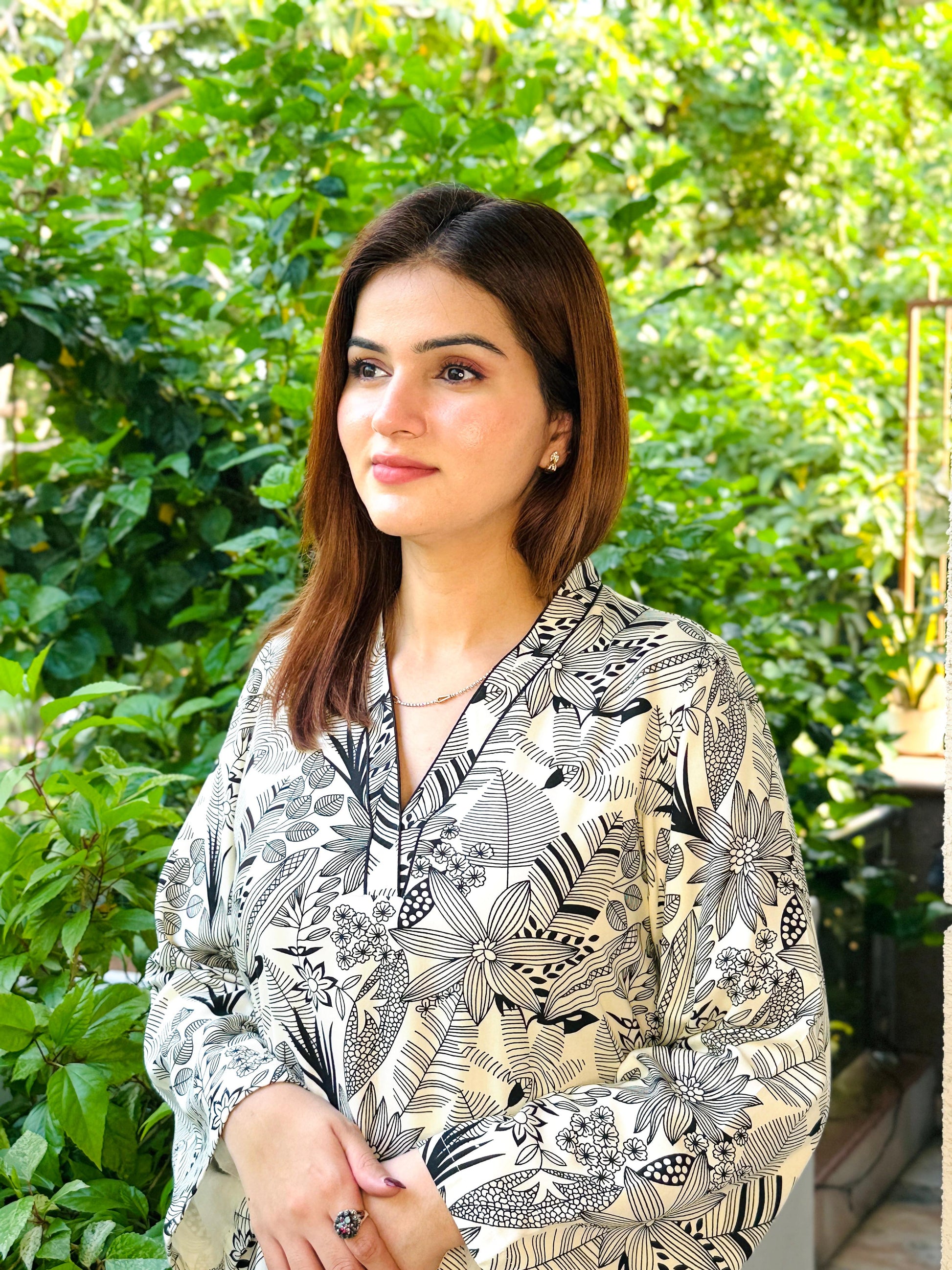 Grace meets comfort in our Ivory Leaf Modal Set, featuring a breezy modal cotton kurta adorned with a serene botanical print. Designed with a relaxed silhouette and a flattering neckline, this kurta is paired with solid Giza cotton trousers, fully lined with pure cotton for added ease and breathability.