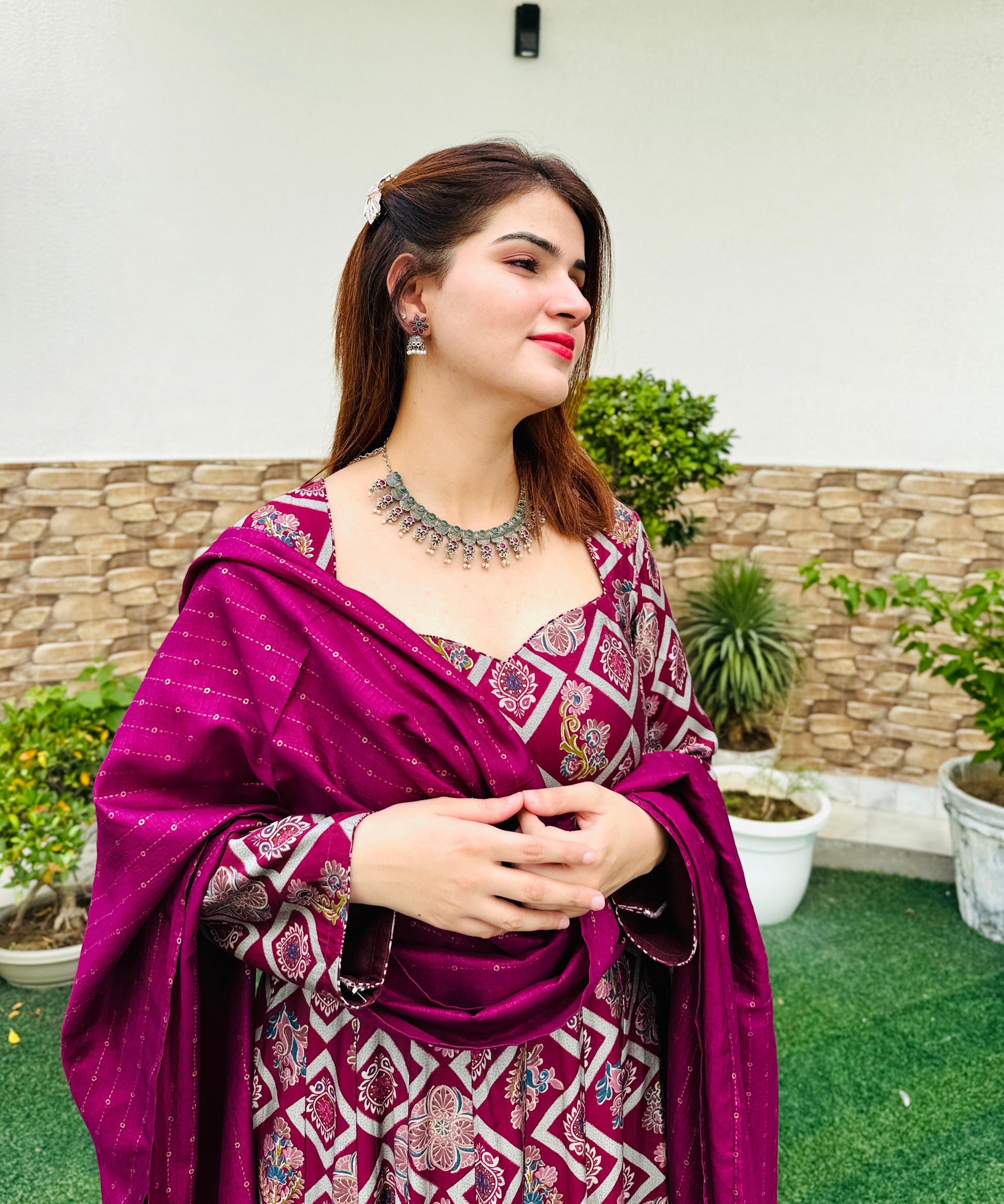 Step into timeless elegance with our Regal Radiance Anarkali Suit Set, designed to make you shine at every celebration.