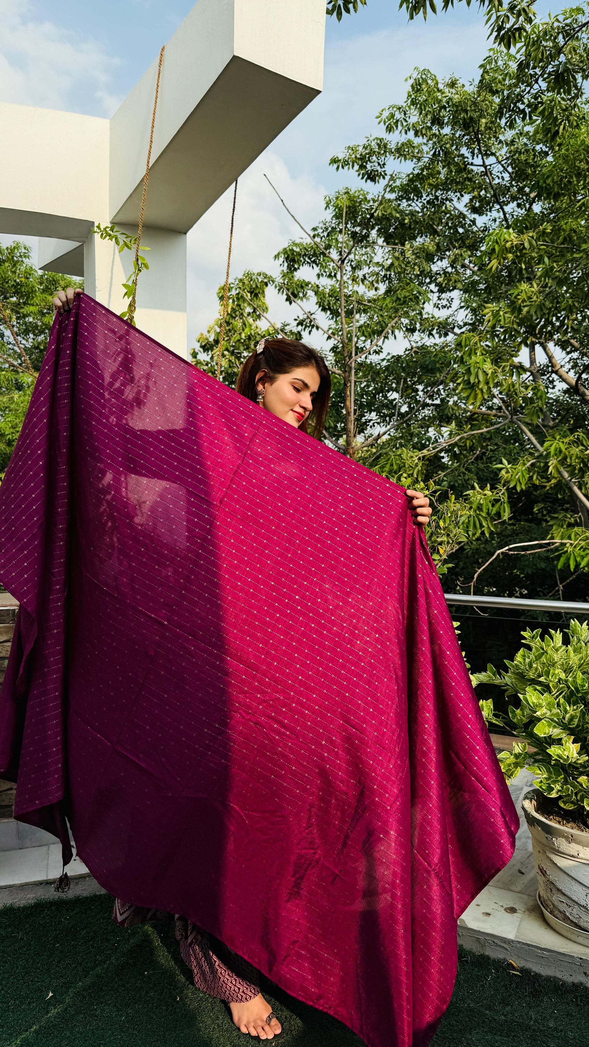 - Dupatta: Draped with a rich Dola silk dupatta, adding a graceful sheen.