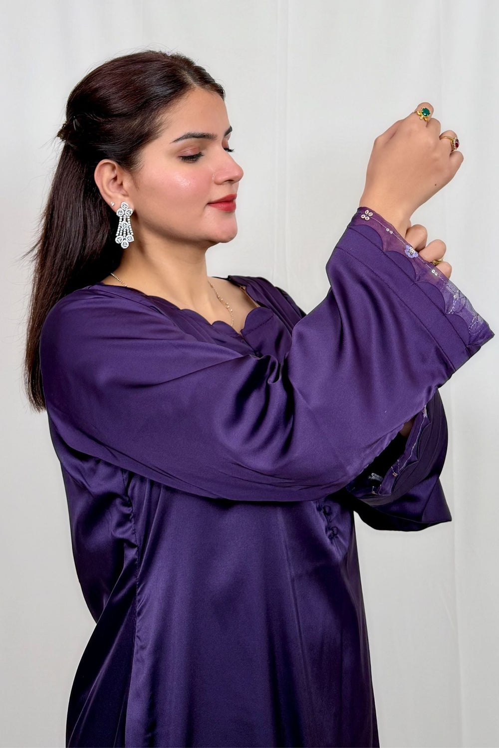 Customized or altered products are not eligible for return or exchange. For ready-to-wear items, exchange requests must be raised within 48 hours of delivery and are subject to review and approval. Full details are available in our Returns & Exchange Policy.